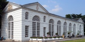 Kew Gardens Orangery was build in 1761 and is 28 by 10 metres. It was designed by Sir William Chambers. However, not enough light was produced for the wintering plants, so they were moved out. Now it’s a … restaurant.