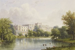 Now we’ll head east and to London for Buckingham Palace. The garden was originally part of Goring Great Garden which belonged to an earlier house on the site, and was designed by Henry Wise for Queen Anne. There’s a mulberry tree that dates back to James I and in the 19th century the lake was home to flamingoes. Around 1762-63, Capability Brown drew up plans for two schemes for the gardens, but only the trees were planted – the oval lake was never built. Brown was the head gardener with responsibility for maintenance of the gardens and at other royal residences, too. In 1825 George IV decided to rebuild Buckingham House (as it was) into a royal palace. The Baroque garden laid out by Henry Wise was removed (none of Wise’s gardens seemed to have survived the landscapers!) and the botanist for Kew Gardens, William Townsend Aiten designed the new gardens. The gardens are now listed – meaning they can’t be messed about with.