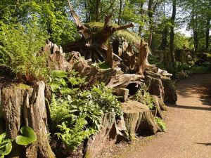 Highgrove House gardens in Gloucestershire has been transforming for 30 years with the addition of a carpet garden, southern hemisphere and sundial garden, and a stumpery. Stumpery is a garden feature like a rockery but instead of rocks, it uses parts of dead trees, or floorboards or even rail sleepers. The first stumpery was built in 1856 at Biddulph Grange and is described as a one of those ‘Victorian horticultural Oddities’. Great for shade loving plants.