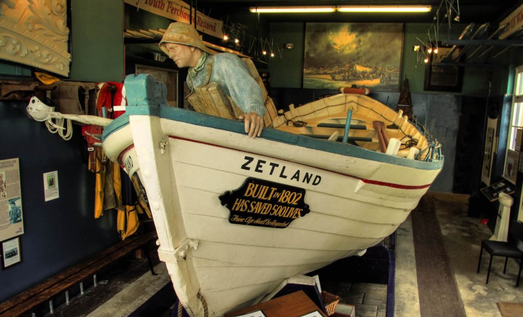 Zetland, the name of the boat, was built in 1802 by Henry Greathead at a South Shields boatyard. He built many lifeboats and Zetland was the eleventh. The Zetland spent the next 78 years in service saving 500 lives. In 1854, a vessel ran aground and local fishermen attempted to refloat it, and got in difficulties; the Zetland was launched and rescued everyone – 52 people ferried on one boat.